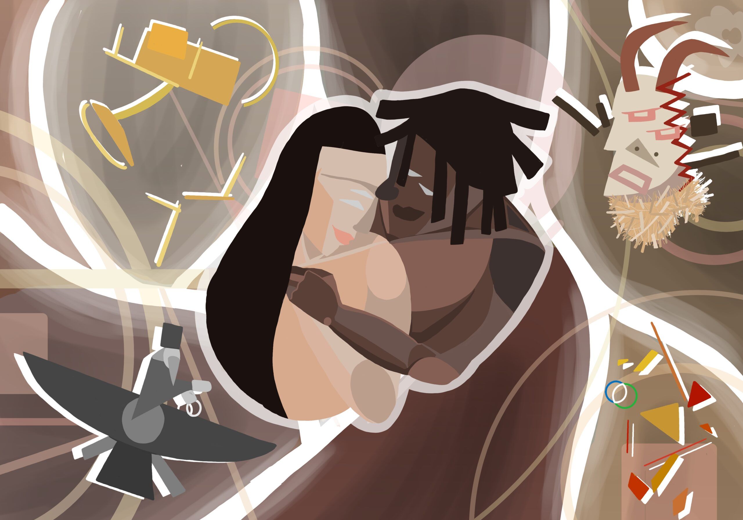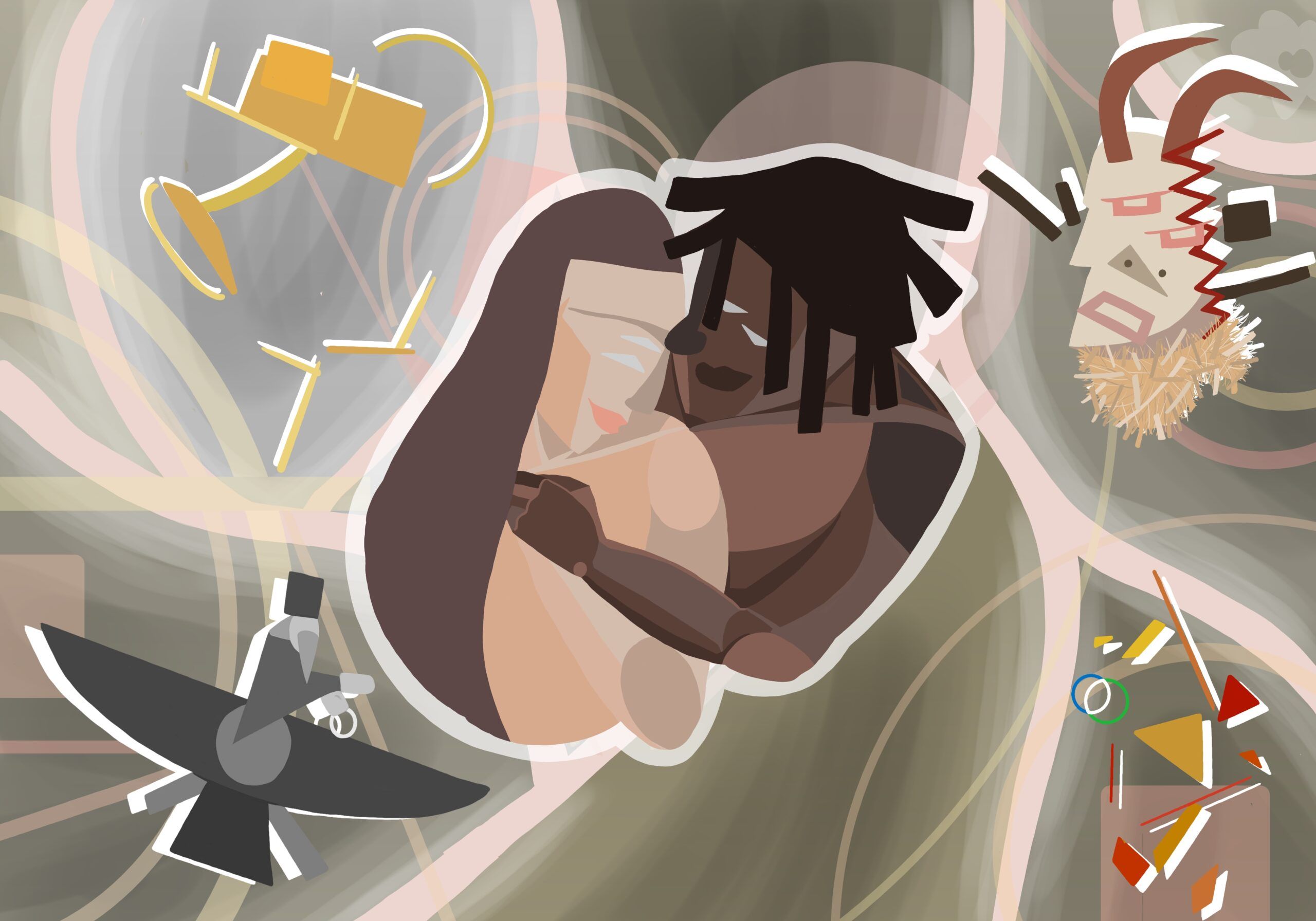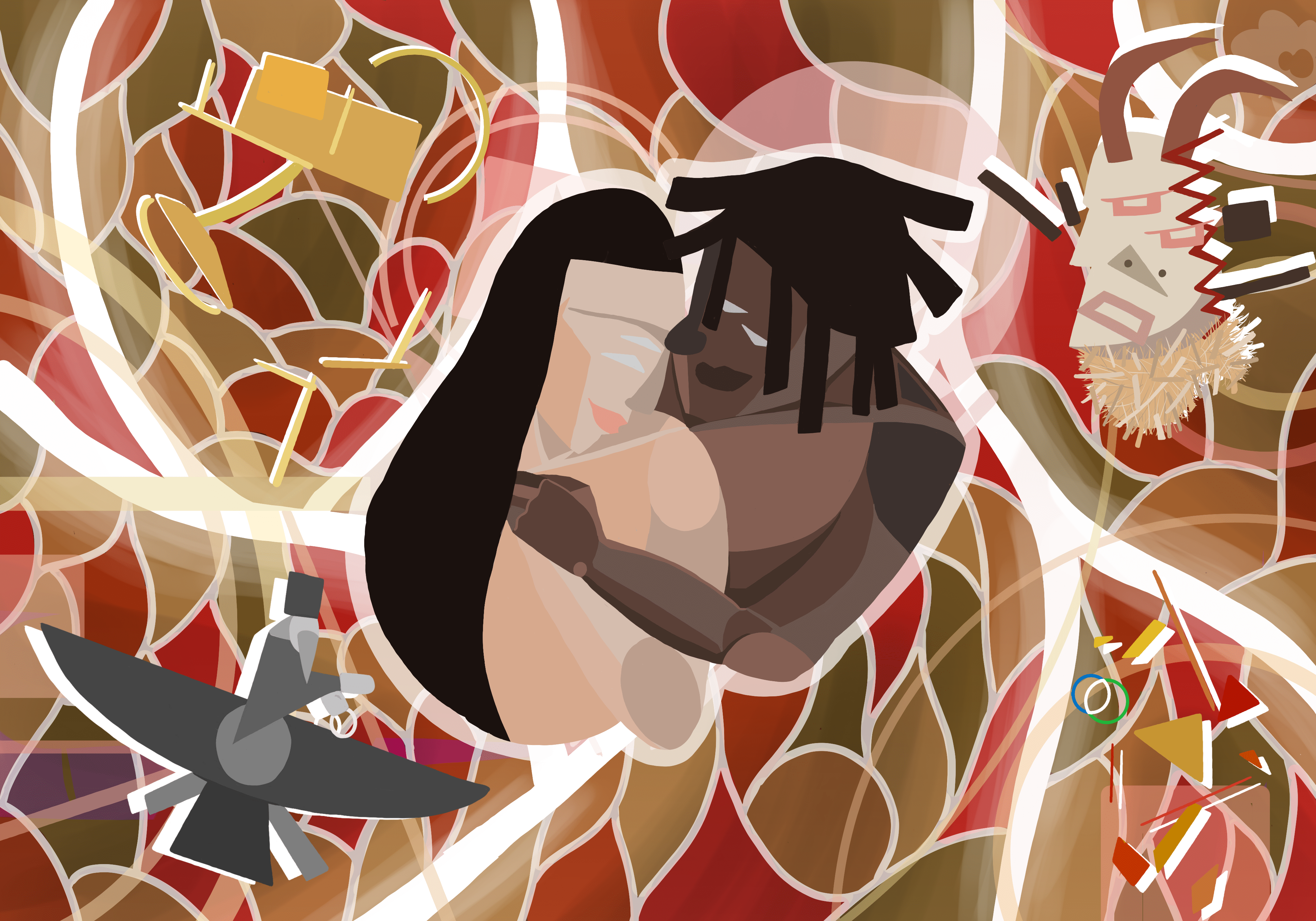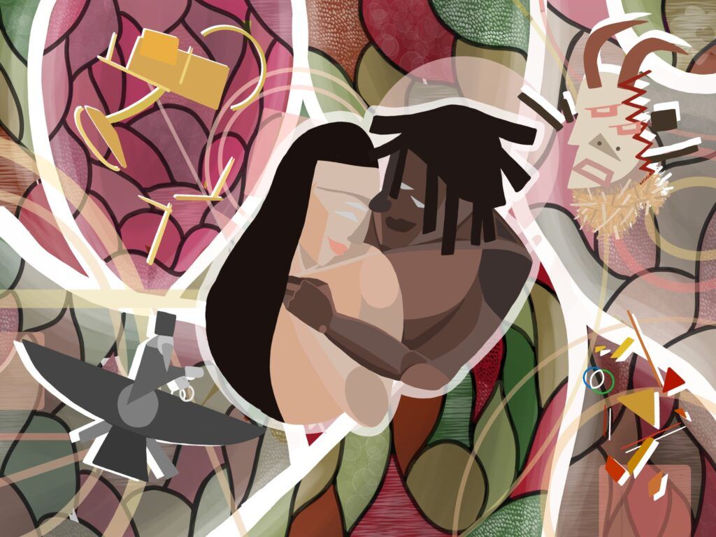 For this particular order, the client had a very clear idea (An afro-cubism inspired piece that describes a romantic relationship between him and his Persian partner) and helpful reference images